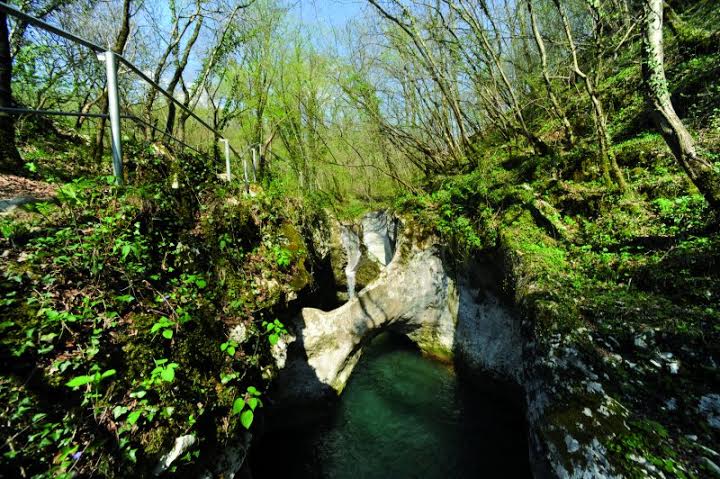 Okrog 800 m nad Kotlinami pod Kožbano je Kožbanjšček izdolbel izredno slikovita korita z imenom Krčnik. Dolga so okoli 40 m, od 0,5 do 6 m široka in do 6 m globoka. Najbolj nenavadna je prva, ogromna draslja. Draslja ali kotlica je kroglasta kotanja v strugi vodotoka, v katero voda zanese kamne in pesek. Vodni tok jih vrti in jo s tem neprestano dolbe. Potok pada vanjo v približno 1,5 m visokem slapiču. Približno na sredini kotlice se razpenja naravni most, ki je lepo zaobljen in gladek, saj ga je ustvarila deroča voda z brušenjem.   2e5645be-4d6f-4fea-818a-f2c34d0416f8 Krčnik, naravna znamenitost, ena najlepših te vrste v Sloveniji, ki je zavarovana kot kulturni spomenik, vas bo očarala v vseh letnih časih. Obok mostu je približno 5 m dolg, 1,5 m debel in do 1 m širok. Takih mostov je v Sloveniji zelo malo; večinoma so bolj robati, nastali s preperevanjem kamnine. Korita se nadaljujejo z ozkim žlebom, mestoma širokim komaj pol metra, ki ga prekinjajo manjše draslje. Na koncu se korita odprejo v sotesko s strmimi stenami, ki se kmalu izteče v ozko dolino. Korita z naravnim mostom v Krčniku in Kotline so že od leta 1985 z občinskim odlokom zavarovana kot naravni spomenik. Kako priti do Kotlin in Krčnika? V vasi Neblo (pri Peternelu) zavijemo v dolino potoka Kožbanjšček. Po cesti, ki vodi v Kožbano, se lahko do Kotlin in više ležečega Krčnika pripeljemo kar z avtom ali kolesom. Veliko boljše pa je, da si vzamemo čas in se po dolini odpravimo peš.