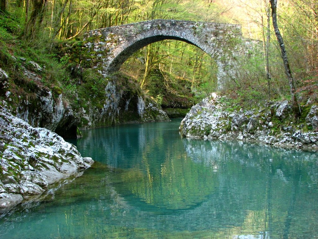 Kamnit stopničast most nad ozkim kanjonom Nadiže, zgrajen okoli leta 1812, kaže na pomembno prehodnost območja od rimskih časov dalje. Čez most je potekala starodavna pot iz Pradola in Robidišča naprej po Nadiži. Po ustnem izročilu naj bi ga zgradil zidarski mojster iz vasi Čenebola v zahodni Slovenski Benečiji. Ker je gradnja mostu potekala v času osvajalskih pohodov francoskega cesarja, nosi njegovo ime. Zaradi redkosti in izjemne gradnje je nepogrešljiv arhitekturni spomenik in vez s preteklostjo. Dostop do reke Nadiže Ob reki Nadiži je potrebno upoštevati parkirni režim, ki ga je občina Kobarid vpeljala z namenom, da se ohrani sožitje med naravo in številnimi poletnimi obiskovalci. Na obrežju reke so urejena štiri parkirna mesta (Napoleonov most, Robič, Podbela, Logje), kjer je v poletnih mesecih (junij, julij, avgust) potrebno plačati nadomestilo za urejanje parkirišča. Na obrežju reke Nadiže ni dovoljeno pranje avtomobilov in posode, kopanje psov, kampiranje izven kampov, kurjenje odprtega ognja, odlaganje odpadkov na mestih, ki za to niso namenjena, ter kakršnokoli onesnaževanje reke in rečnega nabrežja.