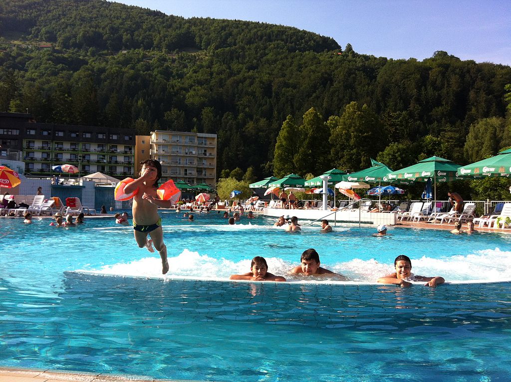 Pri nas so termalna doživetja vse leto na dosegu roke. Vodne površine se razprostirajo na 1.760 m², sončne žarke in gostinsko ponudbo parka pa lahko obiskovalci užijejo na kar 10.000 m² površine. V osrčju hotela Vesna se odpira mesto vodnih atrakcij za vso družino. Topli vrelci, bazen za otroke, masažne prhe, whirlpool in prave rimske kopeli zagotavljajo, da vam pri nas tudi pozimi ne bo dolgčas. Zunanji vodni park svoje vodne vragolije za obiskovalce odpre, ko prvi topli žarki sonca posijejo v dolino. Notranji bazenski kompleks V osrčju hotela Vesna se odpira mesto vodnih atrakcij za vso družino. Topli vrelci, bazen za otroke, masažne prhe, whirlpool in prave rimske kopeli zagotavljajo, da vam pri nas tudi pozimi ne bo dolgčas. notranji-bazenski-kompleks-terme-topolsica-800x430 V hotelu Vesna imamo notranji pol olimpijski bazen (temperatura cc. 29°C) in zimsko-letni bazen, katerega je pol notri in pol zunaj (temperatura od 30°C do 36°C) s podvodnimi masažami ter whirlpooli. Notri je tudi otroški bazen. Temperatura vode v Vodnem parku Zora, ki obratuje v poletni sezoni, je temperatura vode do 30 °C Vodni park Zora Zunanji vodni park svoje vodne vragolije za obiskovalce odpre, ko prvi topli žarki sonca posijejo v dolino. Atraktivne termalne vodne površine, prelivajoči se bazeni, vodne atrakcije, tobogani in bogat gostinski program ustvarjajo pravo mesto vodnih doživetij. Prikupna tlakovana terasa in lepo urejene travnate površine ustvarjajo prijetno okolje za popolne termalne užitke. Lesen mostiček pa povezuje oba dela ter obiskovalce vodi od notranjega do zunanjega bazenskega kompleksa. img_6322-800x430 Odpiralni čas vodnega parka Zora Vodni park zora bo odprt ob sončnih toplih dneh.