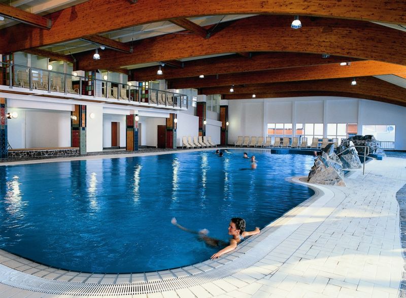 • zasteklenem zimskem vrtu z osmimi vodnimi ležišči in dvema masažnima bazenoma,